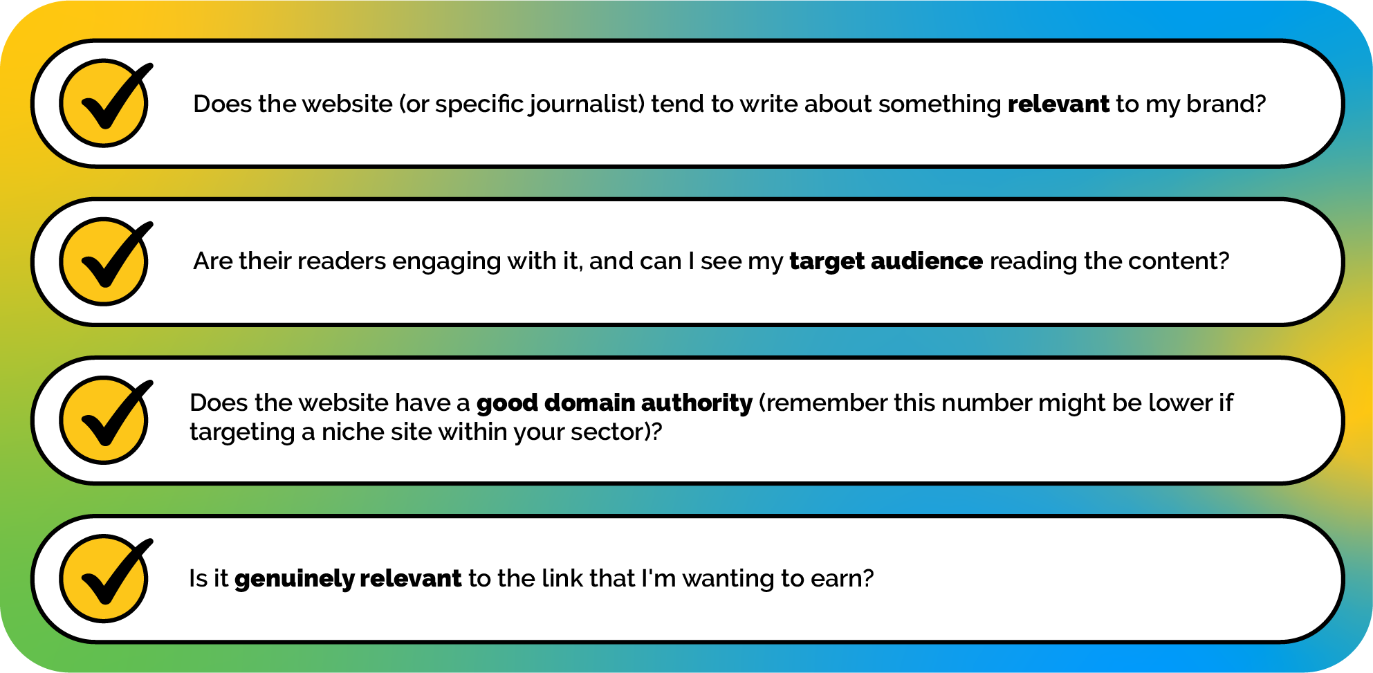 Here's a checklist to help you judge whether a site could play host to a quality backlink for your brand: